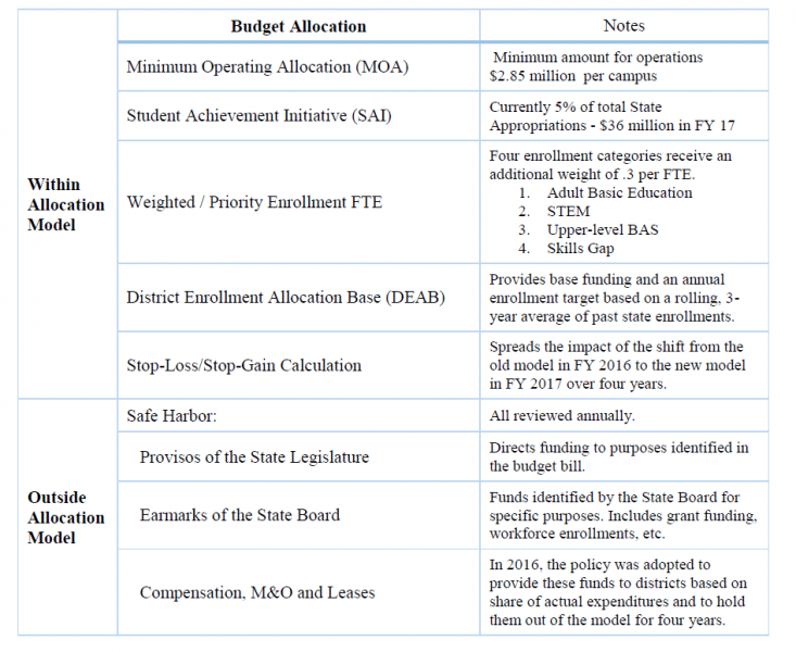 - Washington State 1000 FTE funding - regular addition to College’s allocation due to consistently meeting performance goal