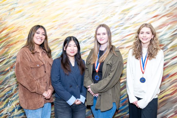 Pictured from left: President’s Student Civic Leadership Award winners Dafne Pinon Guzman and Euncho Seo, and All-Washington Academic Team members Lexi Molineux and Stevie Stout. Not pictured: All-Washington Academic Team member Aristotle Ronyak.