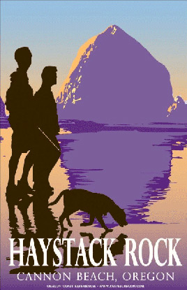 Cannon Beach is my favorite beach. I made Haystack Rock the focus of my WPA style poster. I was happy with the end result of 4 colors, cutouts, and illustration.