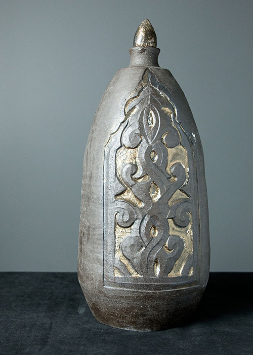 Not only was perfume a valuable commodity but also the containers.The very first bottle were made from clay in ancient times. In Islamic culture, perfume was used either for smelling good or embalming the dead. My interest lies in the forms and patterns from Turkish Arabesque.