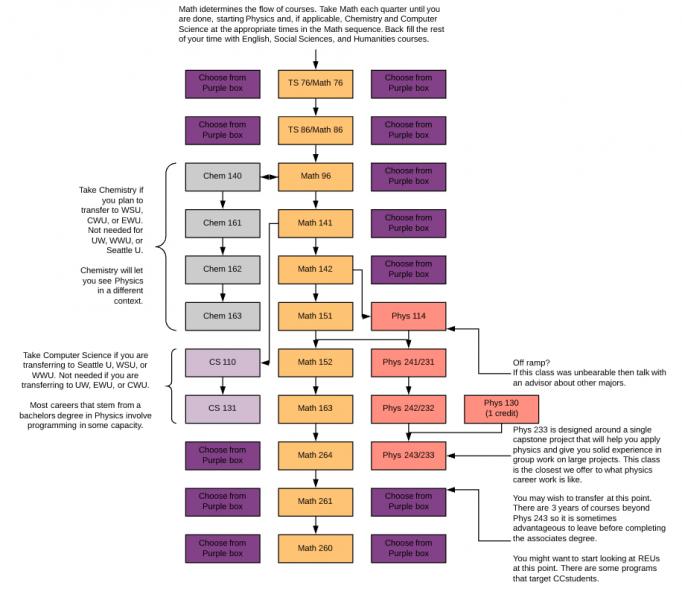 Every student's path will look a little different depending on their placement, where they would like to transfer, and their personal preferences. Below are some guiding principles we use in suggesting courses for Physics majors: